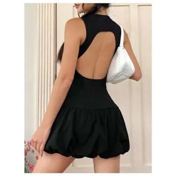 Milumia Women's Mock Neck Cut Out Backless Bubble Dress Sleeveless Ruffle Y2k Mini Dresses Black Medium