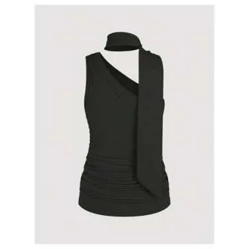 Milumia Women's Ruched Sleeveless One Shouler Shirts Y2K Scarf Top Going Out Club Tank Top Black Small