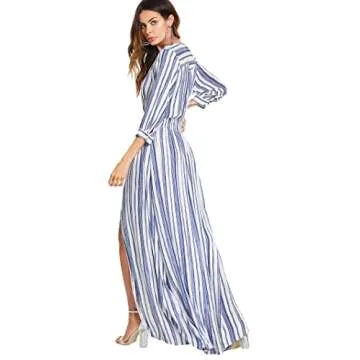 Milumia Women's Stripe V Neck Half Sleeve Split Button Up Party Maxi Dress A Blue Large