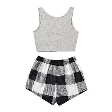 Show moreIntroducing the Milumia Women's Two Piece Pajama Crop Tank Top Tie Waist Fluffy Teddy Shorts Lounge Set, a stylish yet comfortable loungewear set designed for ultimate relaxation. Made from a blend of 65% soft fabric and 35% polyester, this ensemble offers a soft touch and just the right amount of stretch to ensure you feel at ease throughout your day at home. The set includes a chic crop tank top with a notched neck and a pair of plush shorts with a trendy knot waist, making it not only functional but also fashion-forward. Available in a delightful multi color option, you can embrace comfort without sacrificing style.