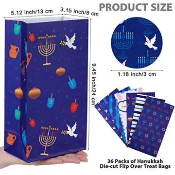 MIMIND 36 Pack Hanukkah Die-Cut Flip Over Treat Bags Party Favor Bags Happy Hanukkah Goodie Gift Bags Hanukkah Gift-Giving Bag with 36 Stickers Paper Bag for Hanukkah Party Supplies Favors