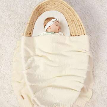 mimixiong Baby Blanket Knit Toddler Blankets for Boys and Girls Ivory 40x30 Inch