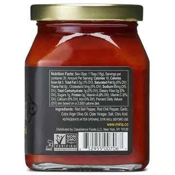 The versatility of Mina Mild Harissa Sauce is unmatched. Use it as a marinade for grilled chicken, a vibrant topping for your favorite hummus, or even as a sprinkle for fresh veggies. It’s gluten-free and composed entirely of non-GMO ingredients, making it a healthy addition to your pantry. Each jar is packed with the rich Mediterranean flavor profile that will tantalize your taste buds and elevate your meals.