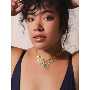 MINACHI Multi Charm Chain Necklace, Evil Eye Sun Star Charm, Retro Ethnic Chunky Necklace Jewelry for Women
