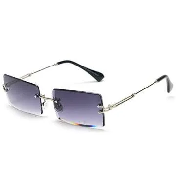 mincl/Fashion Small Rectangle Sunglasses Women Ultralight Candy Color Rimless Ocean Sun Glasses (silver&gray)