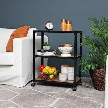 Mind Reader Bar Cart, Rolling Cart, Microwave Stand, 3-Tier, Coffee Cart, Kitchen, Wood Metal, 23"L x 12"W x 29.5"H, Brown