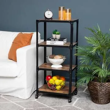 Mind Reader Bar Cart, Rolling Cart, Microwave Stand, Utility Cart, Coffee Cart, Wood,Metal, 17.85"L x 12"W x 39"H, Brown