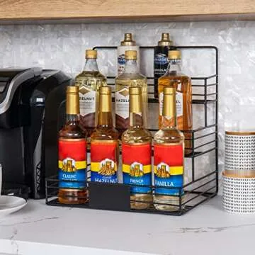 As a testament to its versatility, customers have used this stand in various settings, from a coffee bar to a salon back bar area, proving its ability to adapt to different needs. Elevate your organization game with this stylish and functional bottle stand – it's more than just a storage solution; it's an invitation to a more organized, stylish lifestyle.