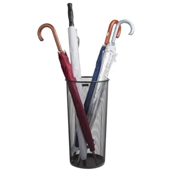 Show moreThe Mind Reader Umbrella Stand is the perfect blend of functionality and modern aesthetics, crafted for those who appreciate a neat and stylish entryway. With its sophisticated black metal mesh design, this stand does not just hold umbrellas; it elevates the decor of any space. Measuring 10.25 inches long x 10.25 inches wide x 19.5 inches tall, it is compact enough to fit into small corners yet spacious enough to accommodate up to 12 umbrellas. The smart, quick-drying mesh promotes airflow, ensuring that your wet umbrellas dry swiftly while preventing water accumulation on your floors. Versatile and chic, this umbrella stand is an essential accessory for homes, offices, and retail spaces alike, making it an ideal solution for keeping your environment organized and stylish.