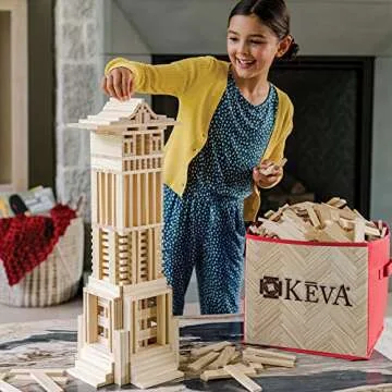 MindWare KEVA Structures 600 Plank Wooden Building Blocks Set, Includes 600 Pine KEVA Planks, 30 Idea Cards and Collapsible Storage Bin