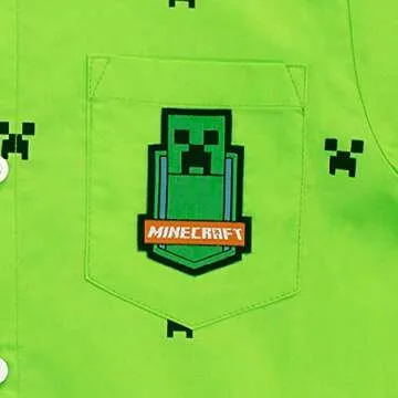 Introducing the ultimate t-shirt for young gamers and fans of the iconic Minecraft universe! This vibrant green button-up tee is not just any shirt; it's a statement piece for kids who love to explore the minecraft world. Featuring a captivating Creeper motif, this shirt is designed to inspire creativity and adventure, making it an essential addition to any Minecraft enthusiast's wardrobe.