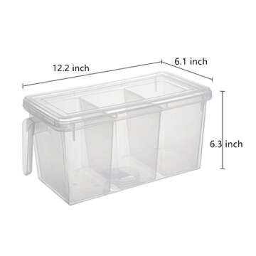 MineSign 2 Pack Plastic Divided Veggie Storage Containers with Lids and Handles for Fridge Storage Organizer Boxes for Refrigerator Produce Beans Fruits Organzation