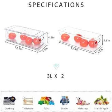 Show moreIntroducing the MineSign 2Pack Stackable Fridge Organizer Drawer, your ultimate kitchen companion designed for efficient organization and ease of access. Crafted from durable PET plastic, these transparent drawers not only boast a solid build but also feature a double-layer structure that ensures longevity and sturdiness. Measuring 5 inches wide, 13.3 inches long, and 4.4 inches high, they are perfectly sized to fit various spaces in your home, from pantries to refrigerators, seamlessly fitting into your lifestyle. With built-in handles, these organizers make it easier than ever to pull out the drawers with ease to access anything from food supplies to crafting materials. Say goodbye to clutter and embrace an organized life!