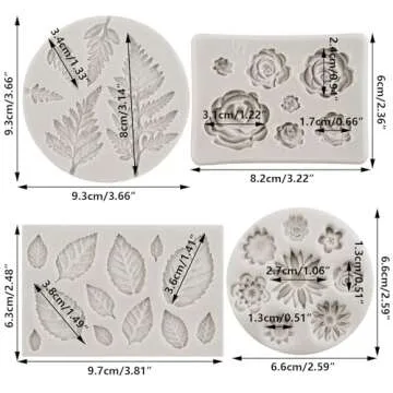 Show more Transform your baking experience with the exquisite Flower Fondant Molds by MINFEIDMS! This delightful set comprises four unique silicone molds: a Rose, Fern Leaves, Daisy, and Rose Leaf, each crafted to bring a touch of elegance to your cakes and desserts. Made from food-grade silicone, these molds are not only durable and reusable but also soft and non-stick, ensuring easy release of your beautiful creations. Whether you're a professional baker or a home bake enthusiast, these molds are essential for decorating your party cakes.