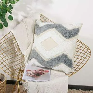 Show moreIntroducing the Mingfuxin Woven Tufted Boho Throw Pillow Covers – a stunning decorative addition that elevates the aesthetic of any sofa, couch, or bedroom space. Crafted with a unique geometric pattern and delicate tufting, these 18x18 inch pillow covers embody modern elegance while offering a cozy touch. Made from a premium blend of 45% cotton, 45% polyester, and 10% viscose, these covers promise both style and durability. The exquisite workmanship ensures that these covers maintain their vibrant colors and shape, making them a perfect choice for anyone looking to enhance their home decor.