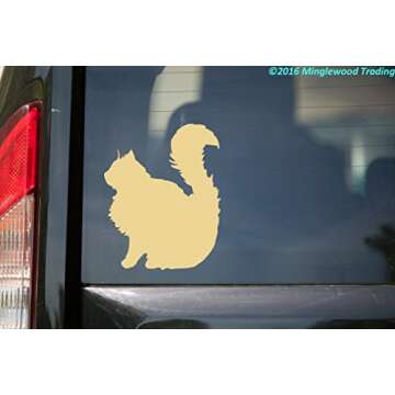 Show moreAdd a touch of personality and charm to your belongings with the Minglewood Trading Long-Haired Cat Sitting Vinyl Decal Sticker. Measuring at a perfect 5" x 4", this delightful sticker celebrates the beauty of long-haired feline friends. Crafted with care in the USA, this decal stands out from the crowd due to its unique design that appeals to cat lovers everywhere. Made from high-grade vinyl, it boasts outdoor durability for up to six years, ensuring that your kitty companion remains vibrant and eye-catching wherever it's applied.