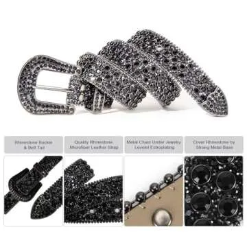 Show moreIntroducing the stunning MINGSUN Rhinestone Belt, a blend of style and functionality that elevates any outfit! Crafted from premium microfiber leather, this belt is built to last, outlasting typical PU materials with its superior durability and resistance to wear. Carefully designed, each belt features hand-set rhinestones that not only shimmer but are strategically placed to remain securely fastened - no more worries about losing sparkles while you dance the night away!