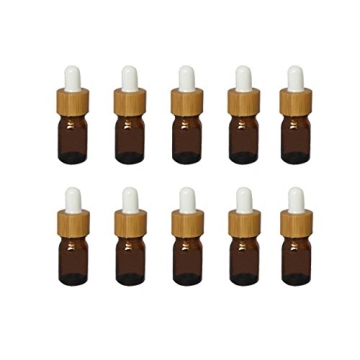 Mini Amber Glass Bamboo White Rubber Head Bottle with Glass Eye Dropper for Essential Oil Pack of 10 (5ml)