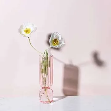 Show more Introducing the exquisite SAROLINYE Decorative Glass Vase, a delightful addition to any home or workspace that effortlessly combines functionality with aesthetic appeal. Crafted with precision, this small yet captivating vase measures 4cm in width and 17cm in height, making it perfect for showcasing vibrant floral arrangements and decorative fillers. Its sleek and modern design allows it to enhance any decor style, from contemporary to rustic.