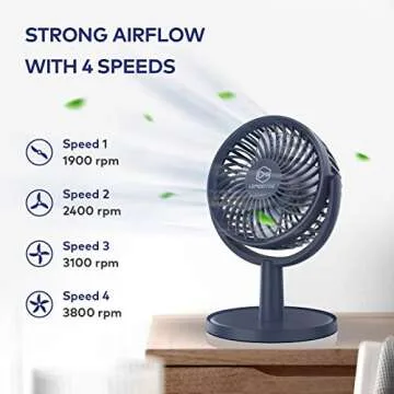 Mini Desk Fan, USB Powered Desktop Fan with 4 Speeds, Small but Powerful Strong Airflow Work Quiet, 310° Adjustment, Portable Personal Air Circulator Fan for Desktop Table Office Bedroom (Navy Blue)…