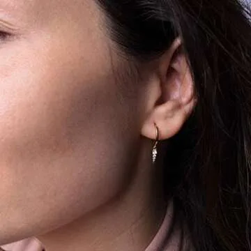 Mini Hoop Earrings - Spike | Dagger Huggie - [.925 Sterling Silver Coated w/ 18K GOLD] Dainty Crystal CZ Drop Pendant - Small Round Cuff Stud / Tiny Loops [Celebrity Approved]