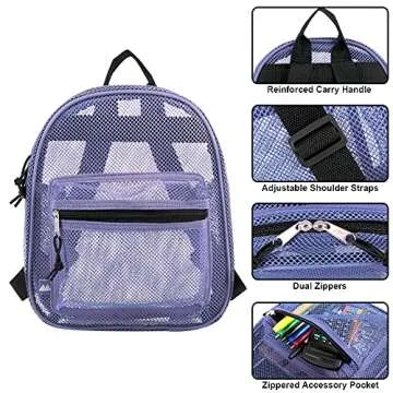 Show more Introducing the stunning PURPLE MESH BACKPACK, a perfect blend of functionality and style. Crafted from lightweight & breathable netted material, this backpack not only makes a fashion statement but is also highly durable. Whether you’re heading to swim class or relaxing at the beach, this versatile backpack can carry all your essentials while showcasing your personality.