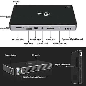 Mini Projector, New Android 7.1 DLP Built-in Battery Wireless Airplay Miracast Screen Share Mirroring Support 1080P Movie Player Portable LED Pocket Pico Projector WiFi USB HDMI Remote