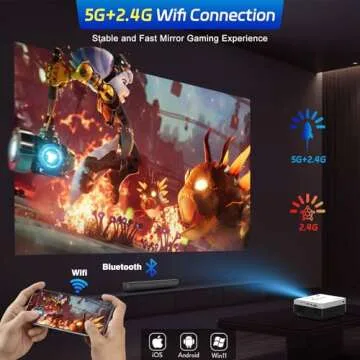 This portable projector is not just a visual marvel; it comes equipped with the latest **WiFi technology**. The V9 wireless projector features a dual-band 5G/2.4G WiFi connection, making streaming and screen mirroring seamless for both iOS and Android devices. The user experience is elevated to new heights, particularly for those cozy movie nights or thrilling gaming sessions.