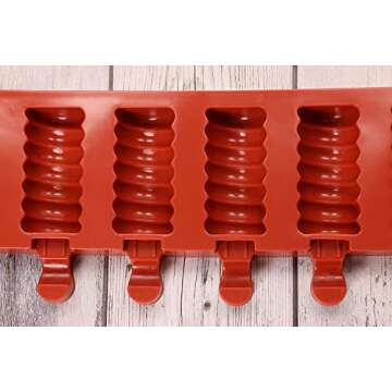 Mini Skater 8-Cavities Silicone Ice cream Bar Mold Reusable DIY Classic Shape Ice cream Makers with 50Pcs Wooden Sticks for Homemade Ice cream,Spiral Shape (1Pcs,Red)