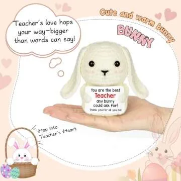 While there are plenty of teachers’ gift options available, our crochet bunny stands apart with its unique handmade quality and heartfelt message. Unlike generic mugs or gift cards, this bunny provides a personal touch that allows the recipient to connect emotionally with the gift. Competitors may offer standard gifts, but the knitted design and customizable message of this bunny ensure that it’s not just a gift, but a token of appreciation that resonates on a deeper level. Its elegance and sentimental value make it more memorable and cherished.
