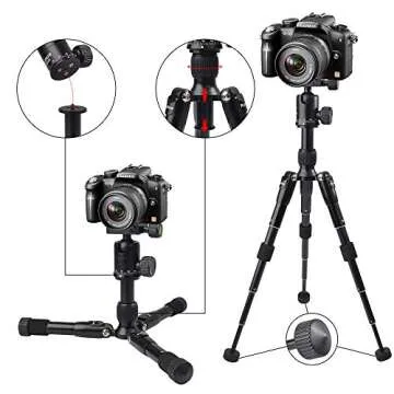 Mini Tripod, Ruittos Tabletop Camera Tripod, 22inch High DSLR Travel Tripod, with 360 Degree Pan Ball Head, Aluminum Alloy, Ultra Compact Portable Compatible with Canon, Nikon, Sony..