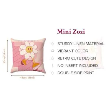 MINI ZOZI Preppy Pillows Covers 18x18 Linen Pink Decorative Throw Pillow Cases Case Girls Aesthetic Room Decor Teen Girls Cute Smiley Face Girl Bedroom for Bed Bedding Stuff Retro Graphic Things