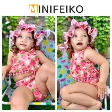 MINIFEIKO 2T Toddler Baby Girls Swimsuit Strawberry Bathing Suit Reversible Bikini 2-3T