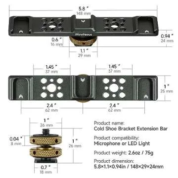 MINIFOCUS Triple Cold Shoe Extension Bar Mount, Aluminum Alloy Hot Shoe Mount Bracket with 1/4" Thread Holes for DSLR Camera Microphone Tripod LED Video Light Flashlight
