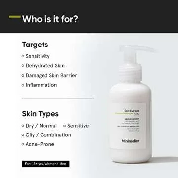 Minimalist 6% Oat Extract Gentle Face Wash for Sensitive, Dry & Dehydrated Skin | Hyaluronic Acid Provides Hydration | For Women & Men | 4 Fl Oz / 120 ml
