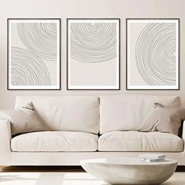 Minimalist Circle Geometric Line Art Boho Wall Art Set of 3 Neutral Abstract Canvas Painting Pictures Boho Prints Wall Art Unframed Artwork Posters for Bedroom Living Room Wall Decor 16x24 Inch