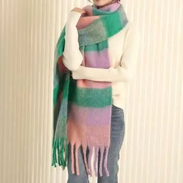The design of this scarf is stunning, featuring a fashionable plaid pattern infused with vibrant colors, accentuated by charming tassel trimming. Its soft texture, moderate weight, and subtle sheen make it an eye-catching piece that is sure to elevate any outfit. From casual outings to more formal events, this versatile scarf will never go out of style, ensuring that you always look chic and feel cozy.