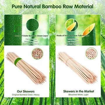 When placed alongside ordinary bamboo skewers, the Minisland skewers shine brightly. Many conventional options are often crafted from the lower-quality inner bamboo layers, making them prone to splintering and breakage. Our premium skewers are sustainably sourced from the resilient outer green layer of Moso bamboo, ensuring they provide superior durability and heat resistance, perfect for grilling substantial amounts of food without worry. With thicker diameter and longer length, they are specifically designed to handle larger, heavier ingredients effortlessly—making your BBQ experience efficient and enjoyable.