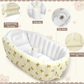 Mink Newborn to Toddler Bath Tub,Inflatable Baby Bathtub with Built-in Air Pump,Portable Travel Shower Basin with Back Support, Deflates and Folds Easily (Bear tub)