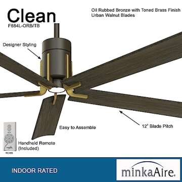 Show moreIntroducing the Minka-Aire Clean 60 Inch Ceiling Fan, a harmonious blend of minimalism and sophistication, perfect for any modern space. This sleek ceiling fan features an Oil Rubbed Bronze finish that complements its Five Toned Brass Blades. It is not only an aesthetic masterpiece but also a functional one, designed to enhance comfort while achieving elegant style. The integrated 10 Watt Dimmable LED Light Module provides ample illumination, ensuring your room remains well-lit without compromising on style. With a focus on intelligent design and user experience, the Clean ceiling fan is set to elevate indoor ambiance significantly.