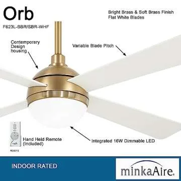 MINKA-AIRE Orb Ceiling Fan in Bright Brass and Soft Brass.