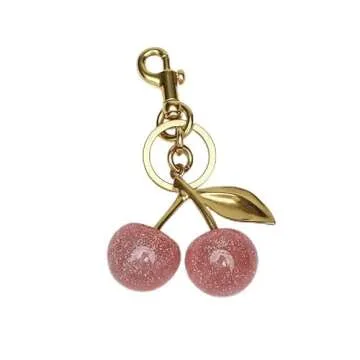 MINKARS Cherry Bag Charm, Cherry Keychain Accessory Purse Charm,Gold-Pink
