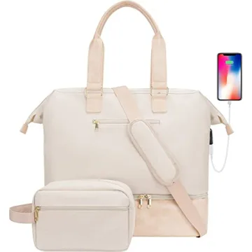 MINKARS Weekender Bag with Shoe Compartment & USB Port - 20" Travel Duffle