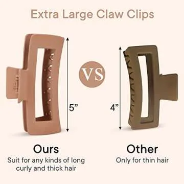 The MINMUNJIU hair claw clips are designed in a generous size of 5 x 1.95 x 2.25 inches, specifically made for thick and long hair.