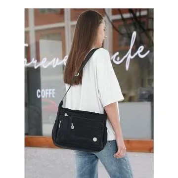 Show moreIntroducing the MINTEGRA Women Shoulder Handbag, the ultimate fusion of style, functionality, and organization. Crafted from lightweight waterproof nylon, this handbag is designed to meet the diverse needs of modern women. With its sleek design and classic zippers, this bag ensures smooth access while providing ample storage without the bulk. Available in two sizes, the small measures 9.8 x 5.1 x 8.2 inches while the large boasts dimensions of 12.2 x 5.9 x 9.4 inches, catering to all your everyday essentials—from wallets to books and even your iPad. Whether you're heading to work, out for errands, or enjoying a day out, this versatile bag adapts seamlessly to any occasion.