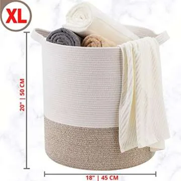 MINTWOOD Design 83L Extra Large 20x18 Inches Decorative Woven Cotton Rope Basket, Tall Laundry Basket Hamper, Blanket Basket for Living Room, Round Storage Baskets for Pillows, Towels, Light Brown