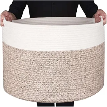 Transform your living space with the MINTWOOD Design Extra Large Decorative Blanket Basket. This 22 x 14in woven cotton rope basket is not just a storage solution; it's a statement piece that blends functionality with elegance. Perfect for storing bulky items like blankets, comforters, and pillows, it also keeps smaller items like books and toys neatly organized. Its sleek, sophisticated design and neutral light brown color complement any room decor, from the living room to the bedroom, making it a versatile...