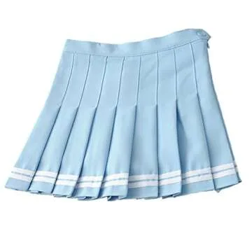MINUOYI Sports High Waist with Underpants Tennis Badminton Cheerleader Pleated Skirt (Tag Size S, Sky Blue + White Stripe)