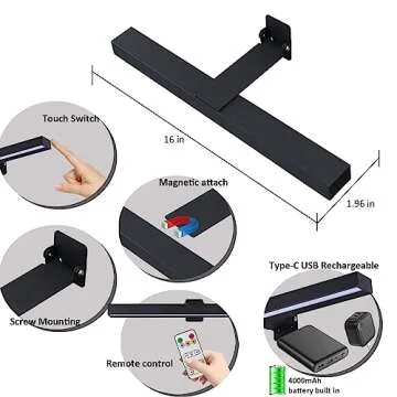 MIOBLUE LED Picture Lights with Remote, 16in Metal Battery Operated Picture Light,Rechargeable Display Lamp,Dimmable Dartboard Light with Timer for Frame Wall Portrait Art, 2Pack
