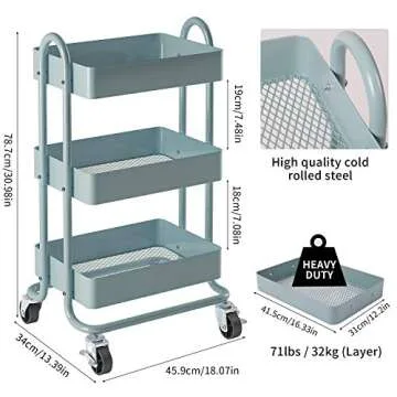 Crafted from a sturdy steel frame with a rust-resistant powder coating, this rolling cart boasts a robust construction that can withstand daily usage. Each tray is capable of holding up to 71 lbs, ensuring it meets your storage needs efficiently. The four rubber wheels can rotate a full 360 degrees, allowing for effortless movement across various surfaces without making a sound. You can easily glide it through tight spaces, making it a perfect choice for homes or offices with limited room.